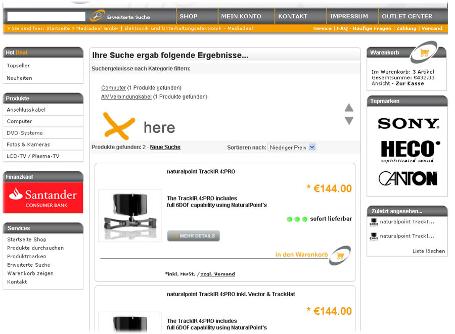 It sounds like Drill Down Navigation may meet your needs. See : http://wiki.earlyimpact.com/productcart/search_fields_widget#an_example I also noticed the santander link has &adminpreview=1 on the end of it. This isn't nescessary and I recommend removing it. |