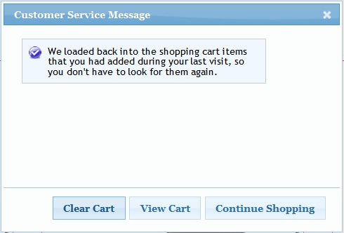 "We loaded back into the shopping cart items that you had added during your last visit, so you don't have to look for them again"