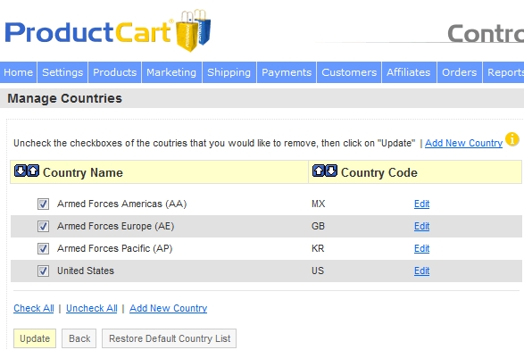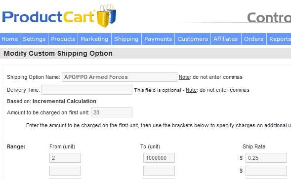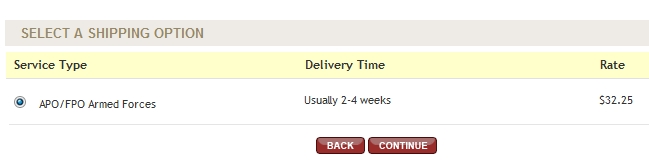 Post Options Post Options   Thanks (0) Thanks(0)   Quote WGSnet Quote  Post ReplyReply Direct Link To This Post Topic: How To Setup APO/FPO Shipping Option